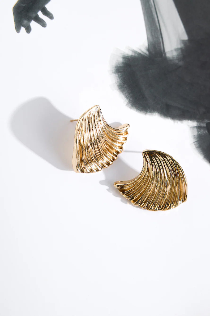 The 18k Gold Plated Graphics Earrings feature a polished metal construction with a unique textured design. These earrings offer a modern and stylish look, perfect for adding a touch of sophistication to any outfit.