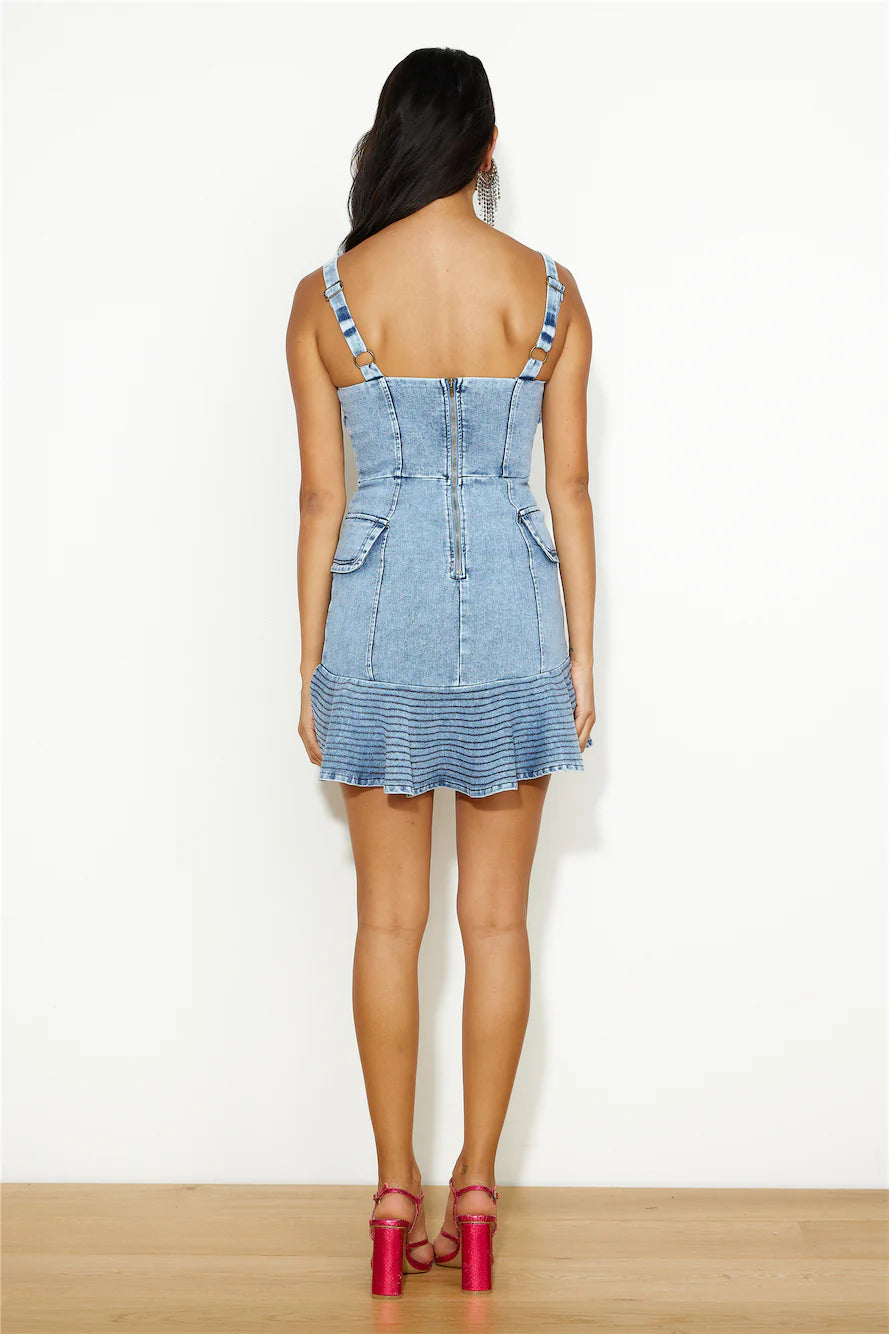We've got the cutest look ready for you, girl. The Denim Queen Mini Dress features faux pockets and a frill hem. Style with sandals for a look we're loving.