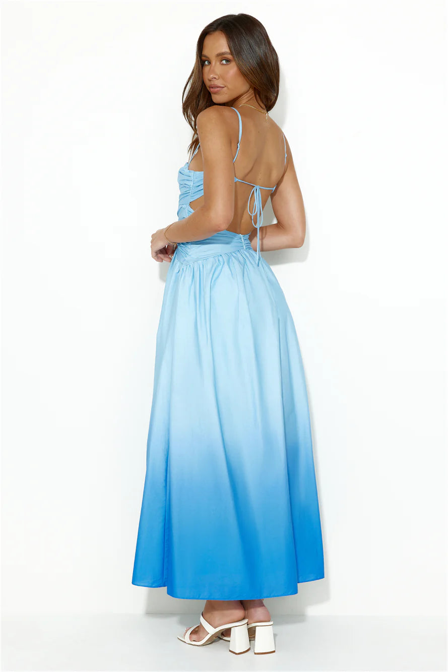 Love the look you're in, girl. The Dipped In Fun Midi Dress features a flowy skirt and V-neck design. Style yours with heels and curls for your best look.