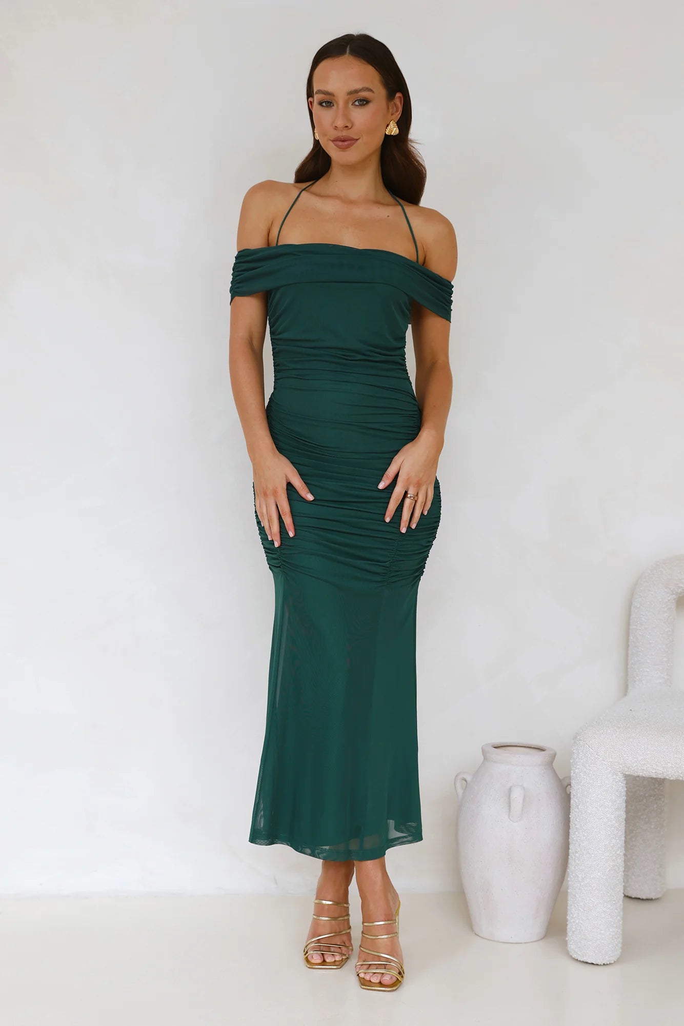 Lovely, be seen in a stylish silhouette! The Dovie Off Shoulder Mesh Maxi Dress features a halter tie, an off-the-shoulder design and perfectly placed gathered details. Style with heels and soft curls for a formal event.