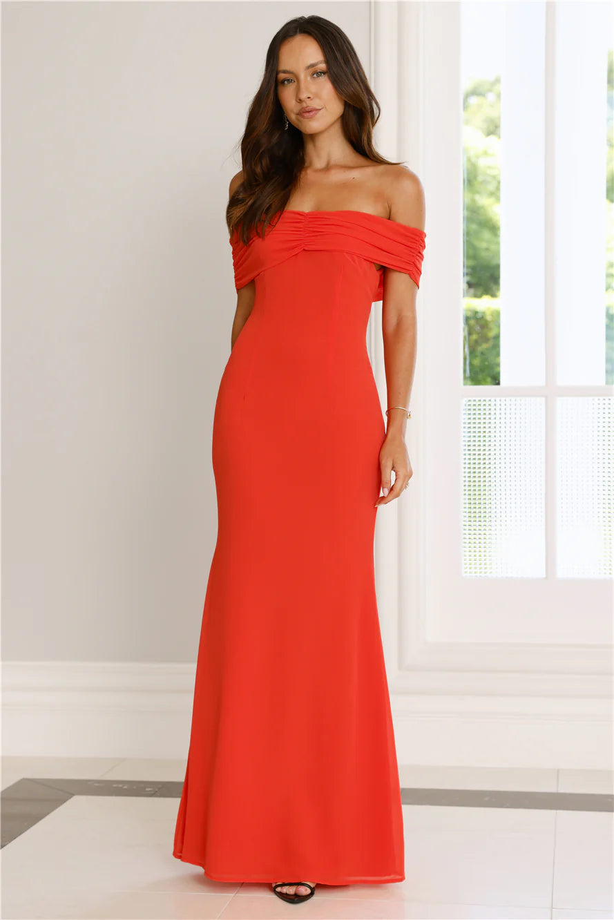 Lover of sophistication, we've got the dress for you. The Endless Desire Off Shoulder Maxi Dress features a chiffon-style silhouette and a folded neckline. Style with heels to a fancy event and impress.