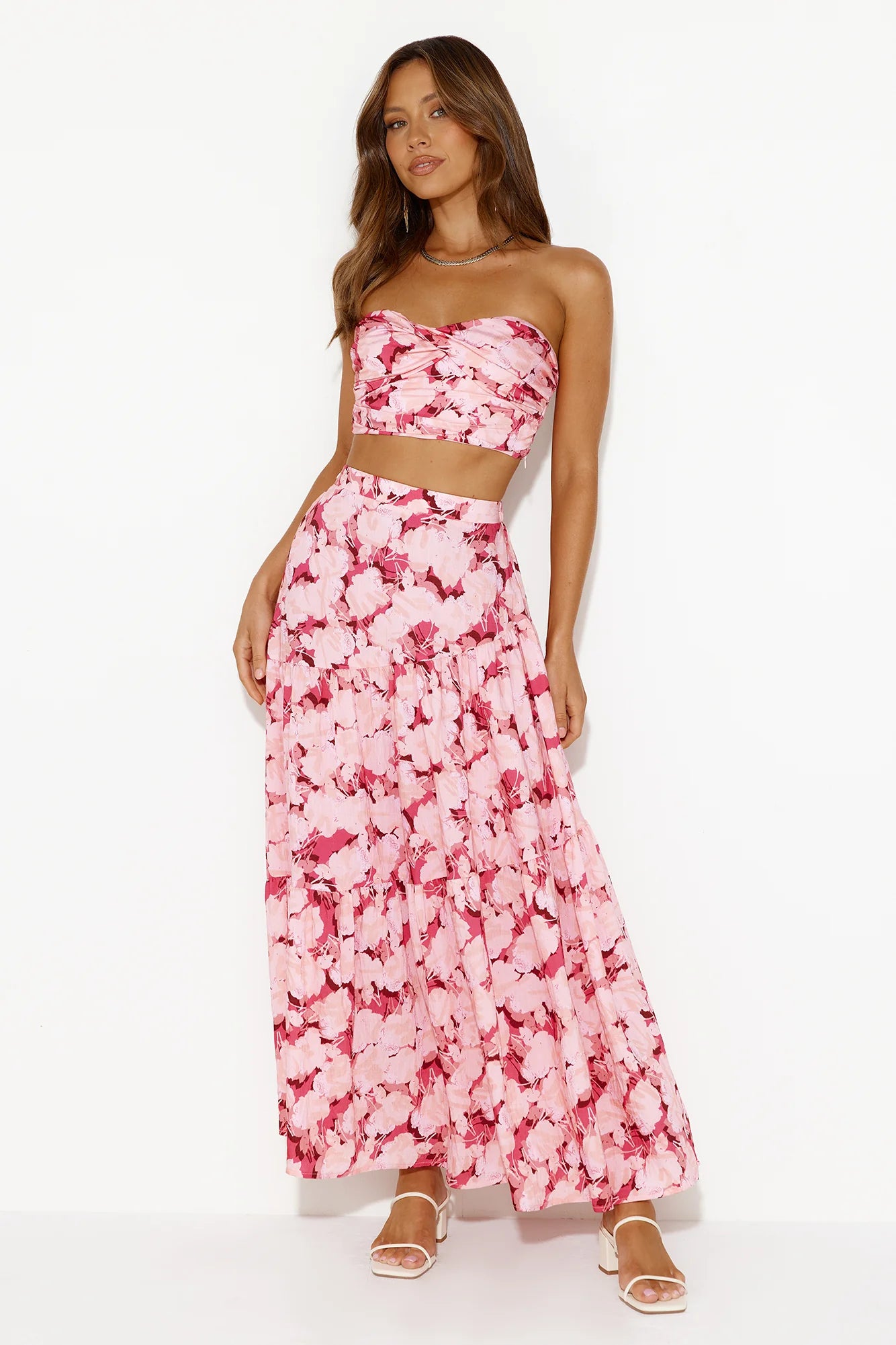 Style vibrancy with the Escaping Reality Maxi Skirt. Featuring an elastic waist and a flowy design. Style with the matching for a new season 'fit.