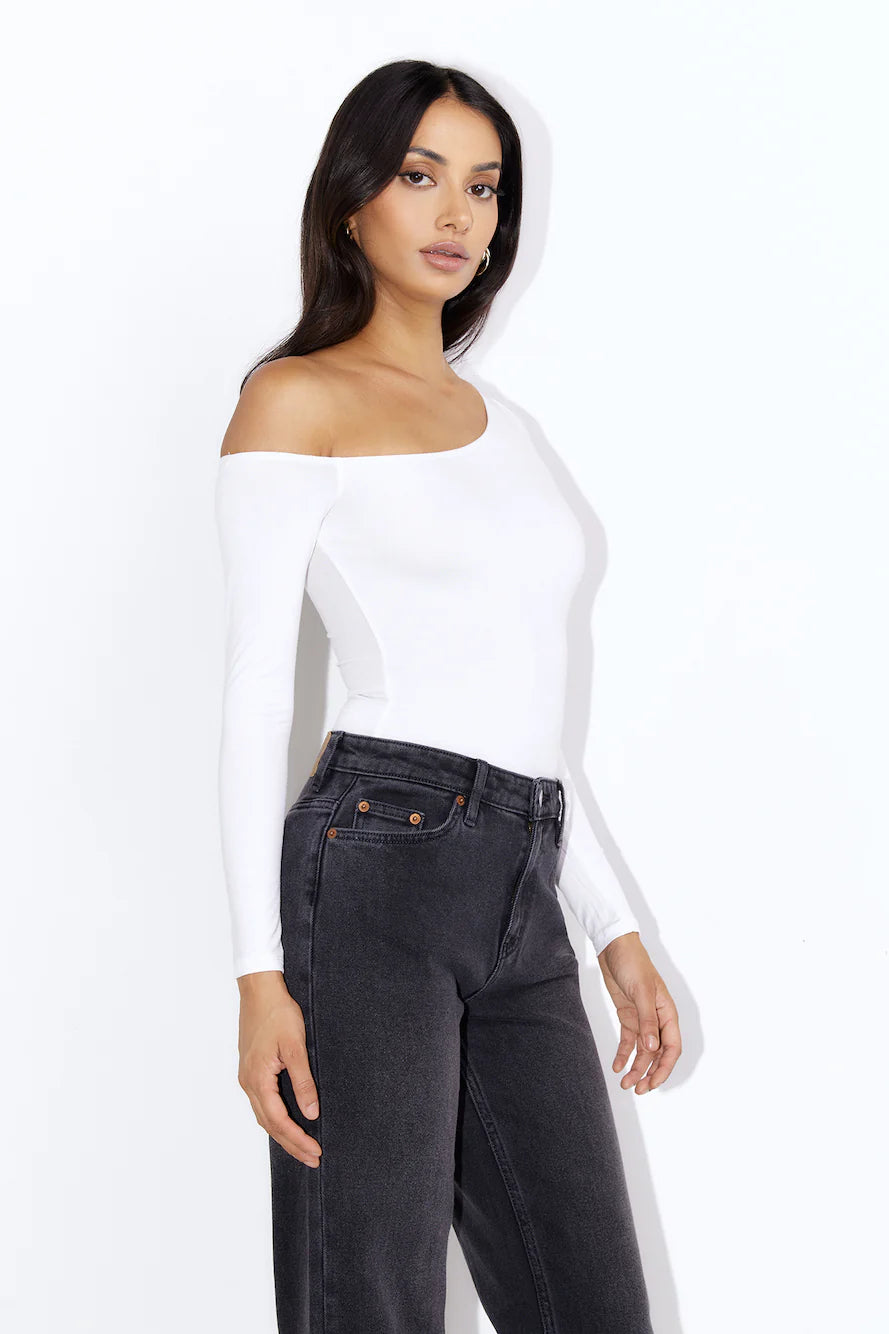 Every girl needs the Fashion Basics Bodysuit. Featuring an off-the-shoulder design and snap buttons to gusset. Style with pants and heels for a dinner date.
