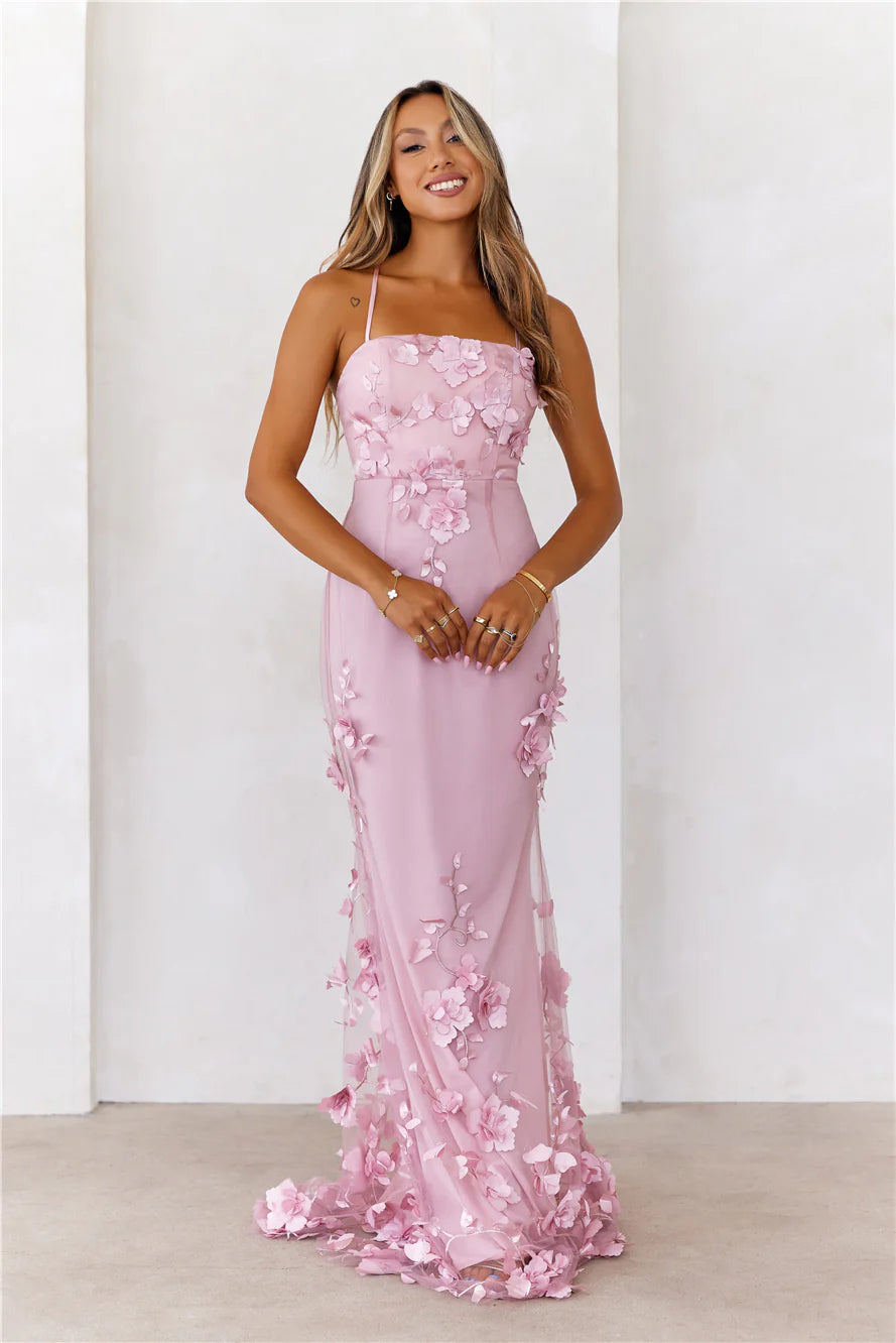 The Flower Vine Maxi Dress needs to be seen on you, lovely. Featuring a mesh overlay adorned with embroidered floral decorations, it exudes elegance. It's perfect for special occasions where you want to shine with effortless grace. Style with heels and sparkly accessories!