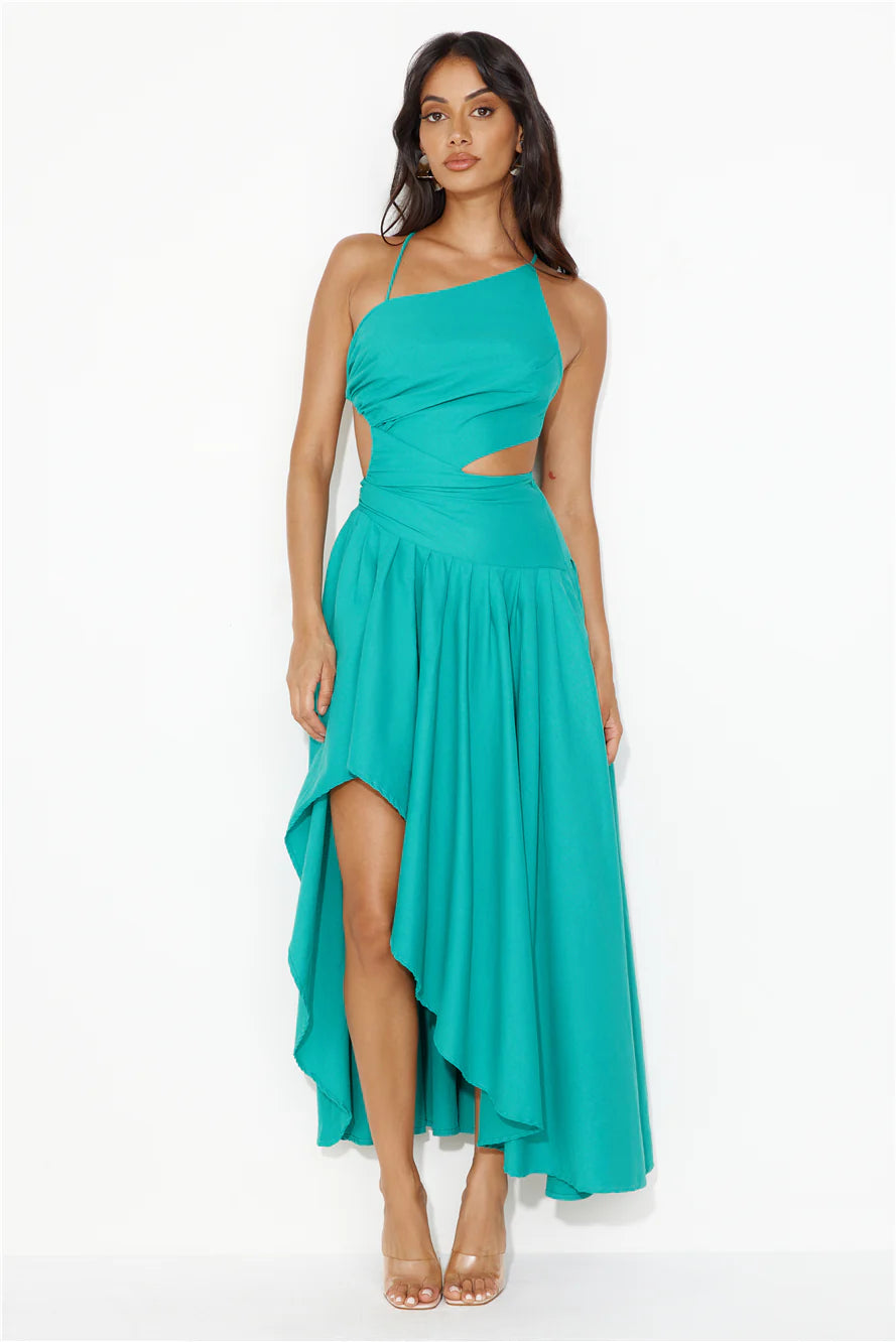 Be seen in a 'fit that's as dreamy as you! The Frolicking Fields Midi Dress features a pleated asymmetrical skirt and a tie-up back. Style this gorgeous design with heels for all the compliments.