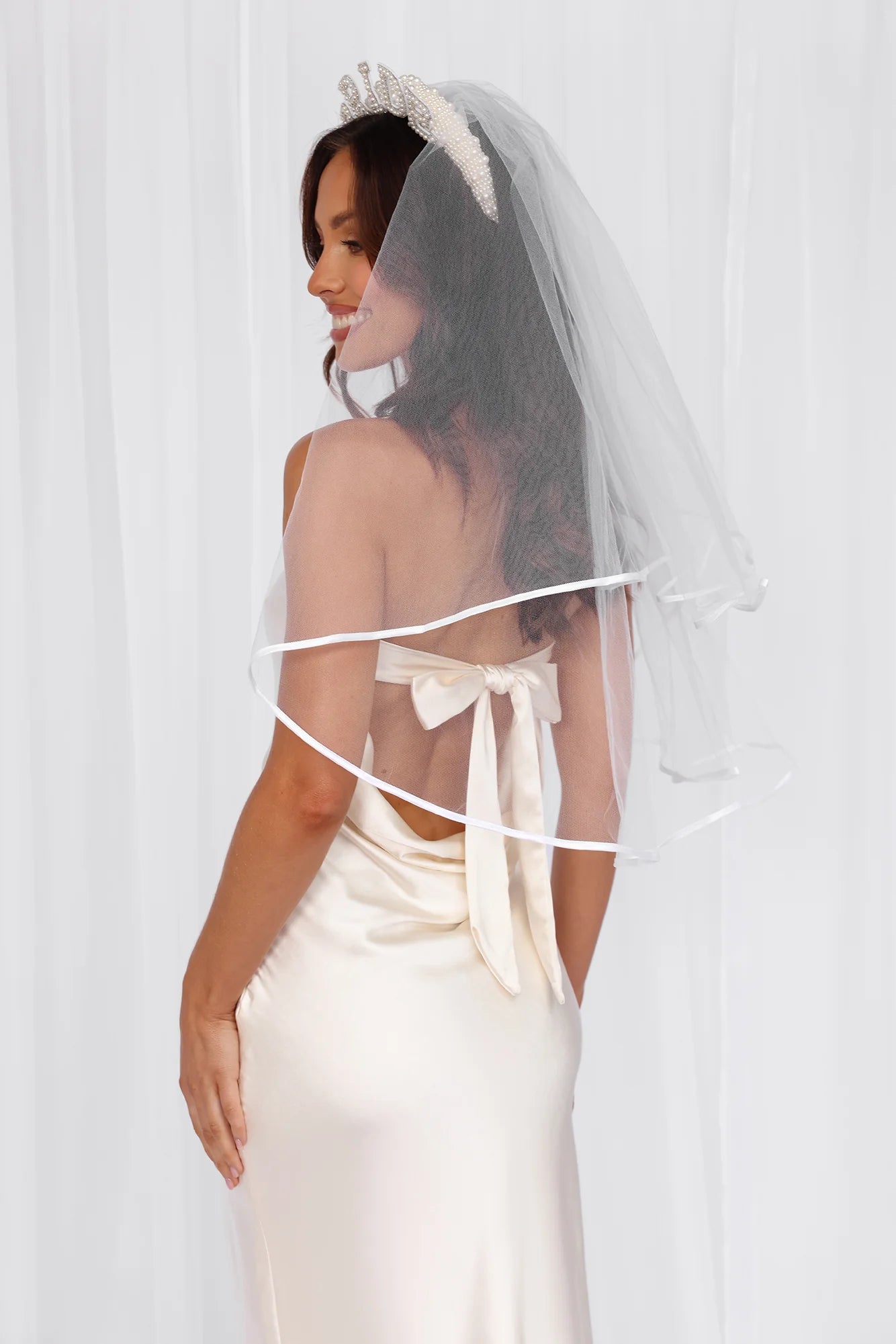 For the gorgeous bride. The HELLO MOLLY The Brides Arrived Veil features a faux pearl headband with a voluminous veil attached. Perfect for hen's nights, bachelorette parties, and bridal showers.