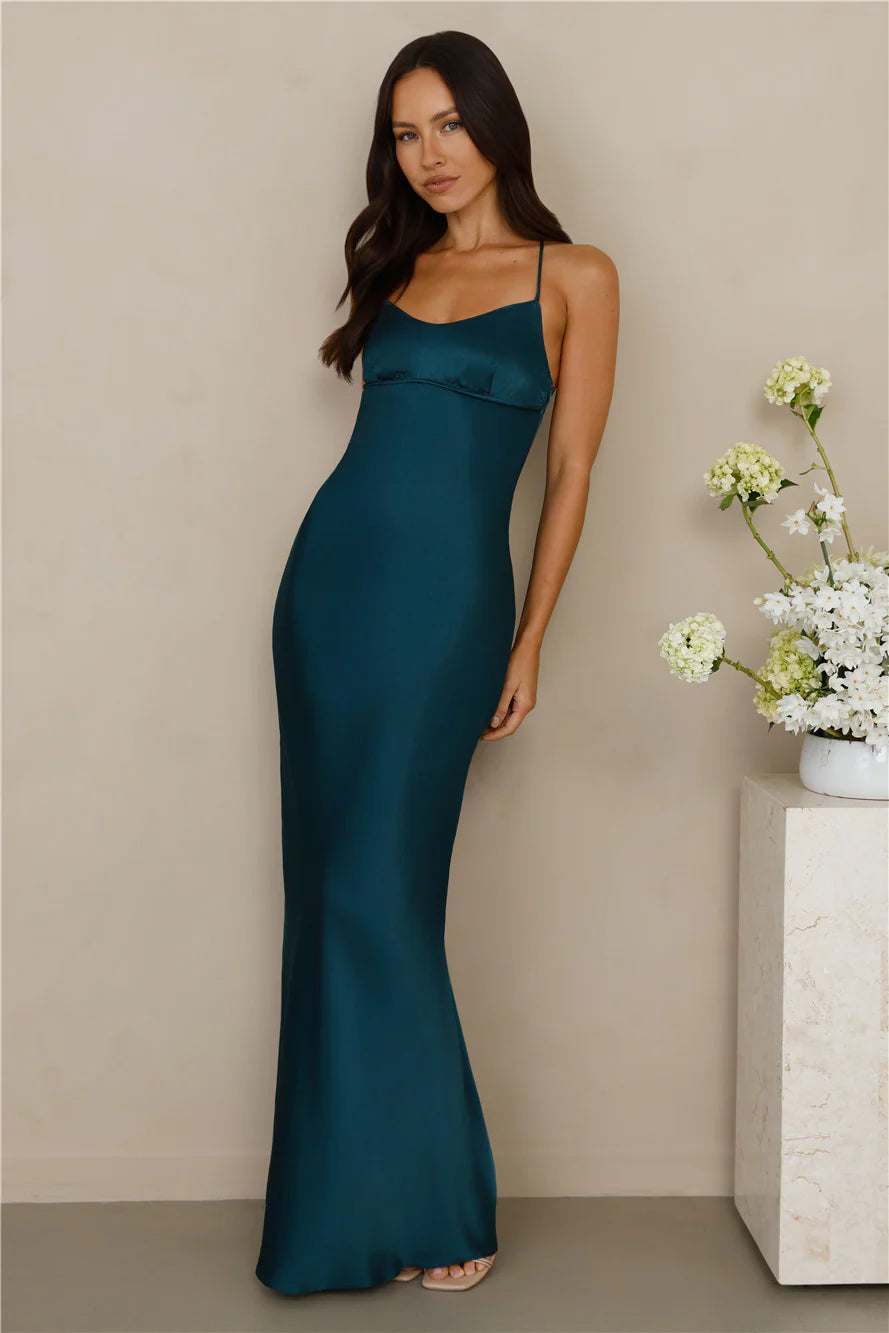 For lovers of contemporary style! Featuring a chic scoop neckline, a V-back design and a crisscross tie-up back detail that gives a modern and playful feel, ensuring a stunning silhouette from every angle. Perfect for adding a touch of sophistication to any bridal party, this dress promises to dazzle and delight with its elegant style.