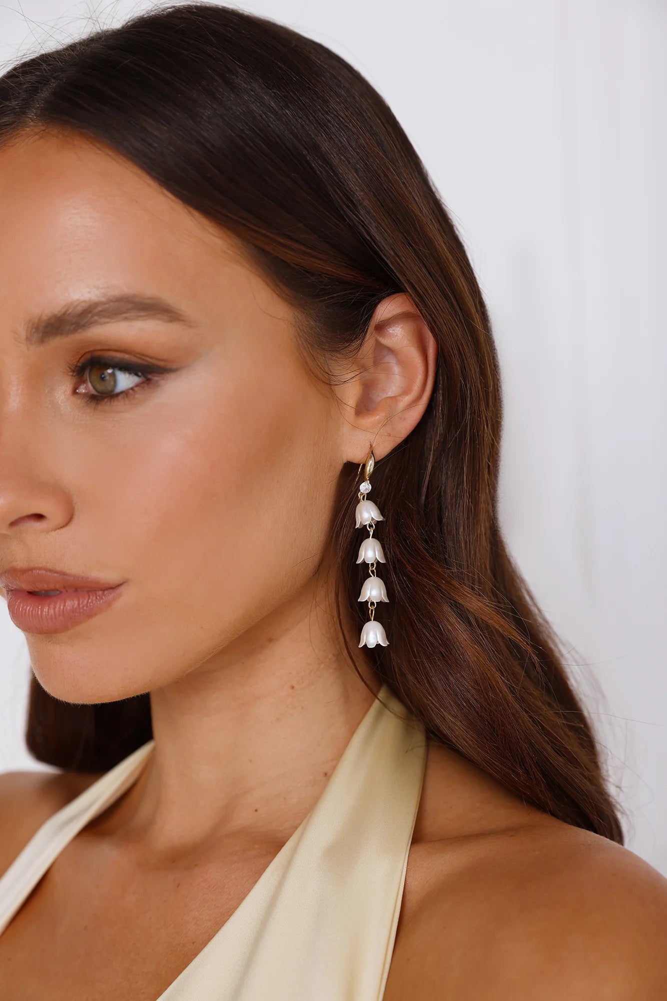 Bloom in style with the Tulips Earrings. Featuring a dangle design with pearl-like tulips. Style with your daytime 'fit for a touch of sophistication.