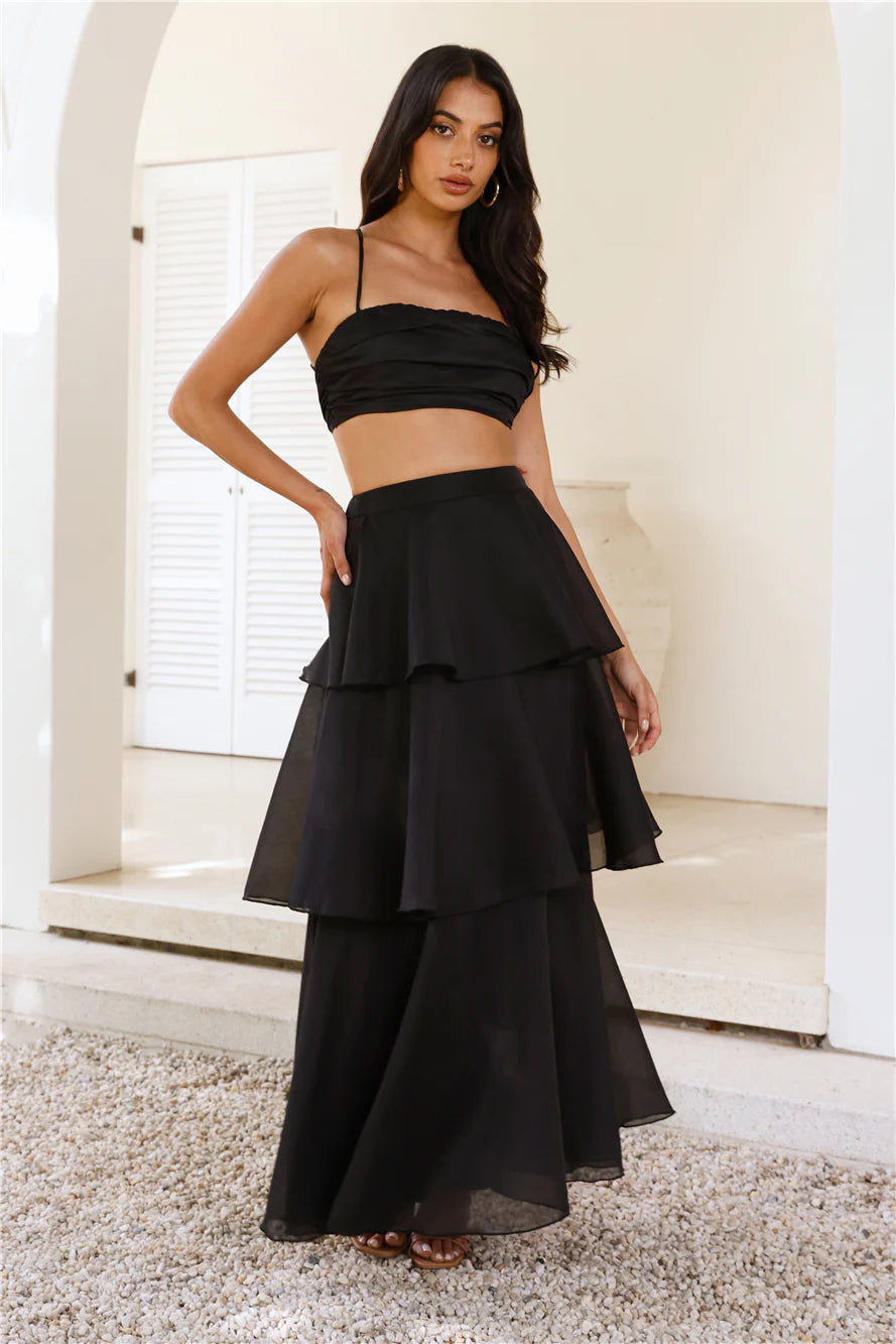 Showstopping 'fit - yes, please! The Two Becomes One Frill Maxi Skirt features a gorgeous tiered frill design and an elastic waistband. Style with the matching for a look you won't want to take off.