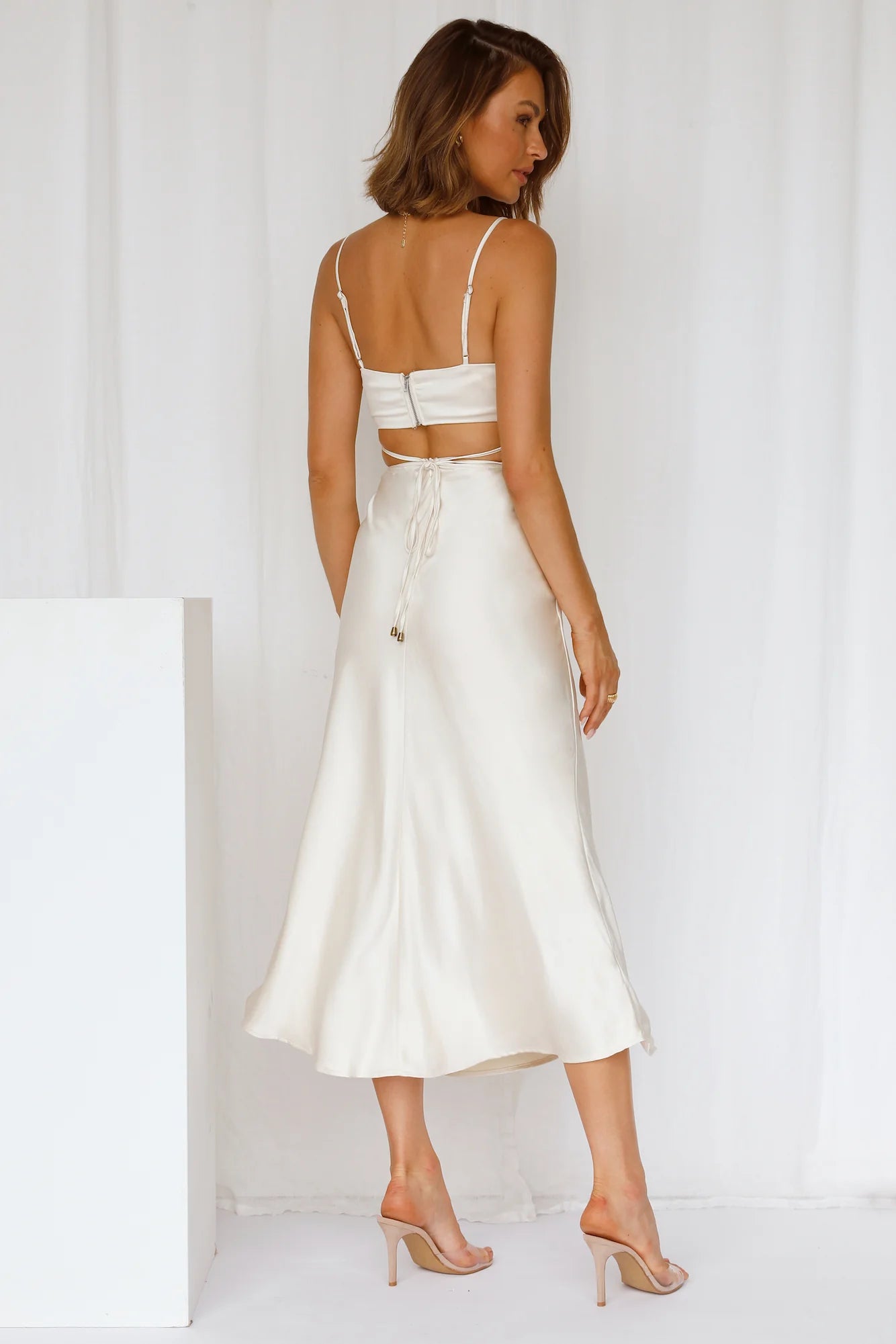 Slay every event in this sultry number. The Undercover Lover Midi Dress has a padded bust with a subtle sweetheart necklines, a dramatic midriff cutout with many ties and a flowy skirt. Style yours with heels and a red lip.