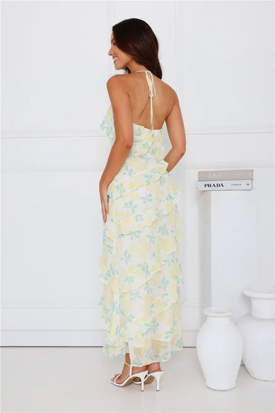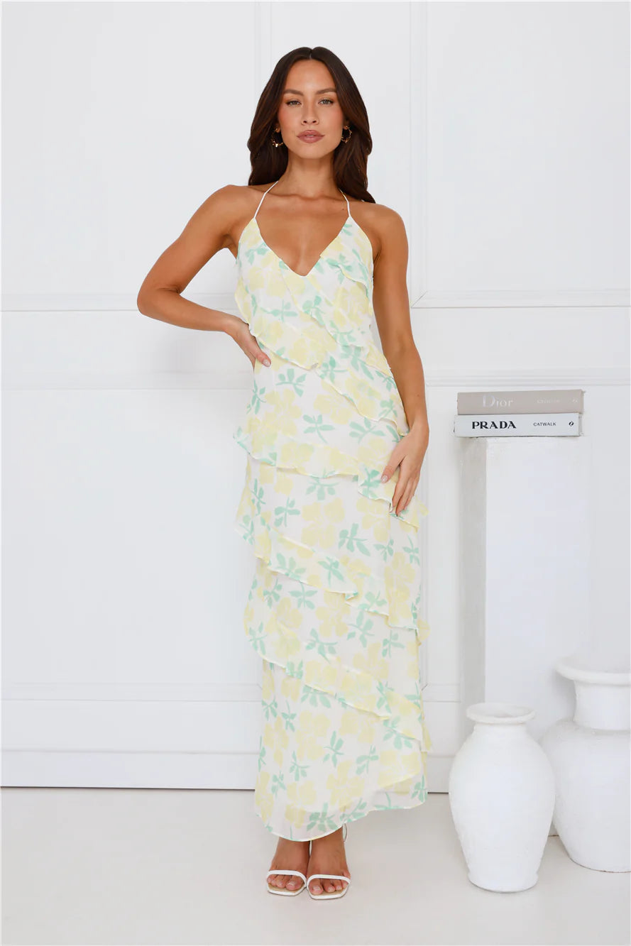 Hello lovely, show them what you got with the Unique Beauty Halter Maxi Dress. Featuring a V-neckline, a halterneck tie and gorgeous frill detailing. Style it with heels for all the likes!