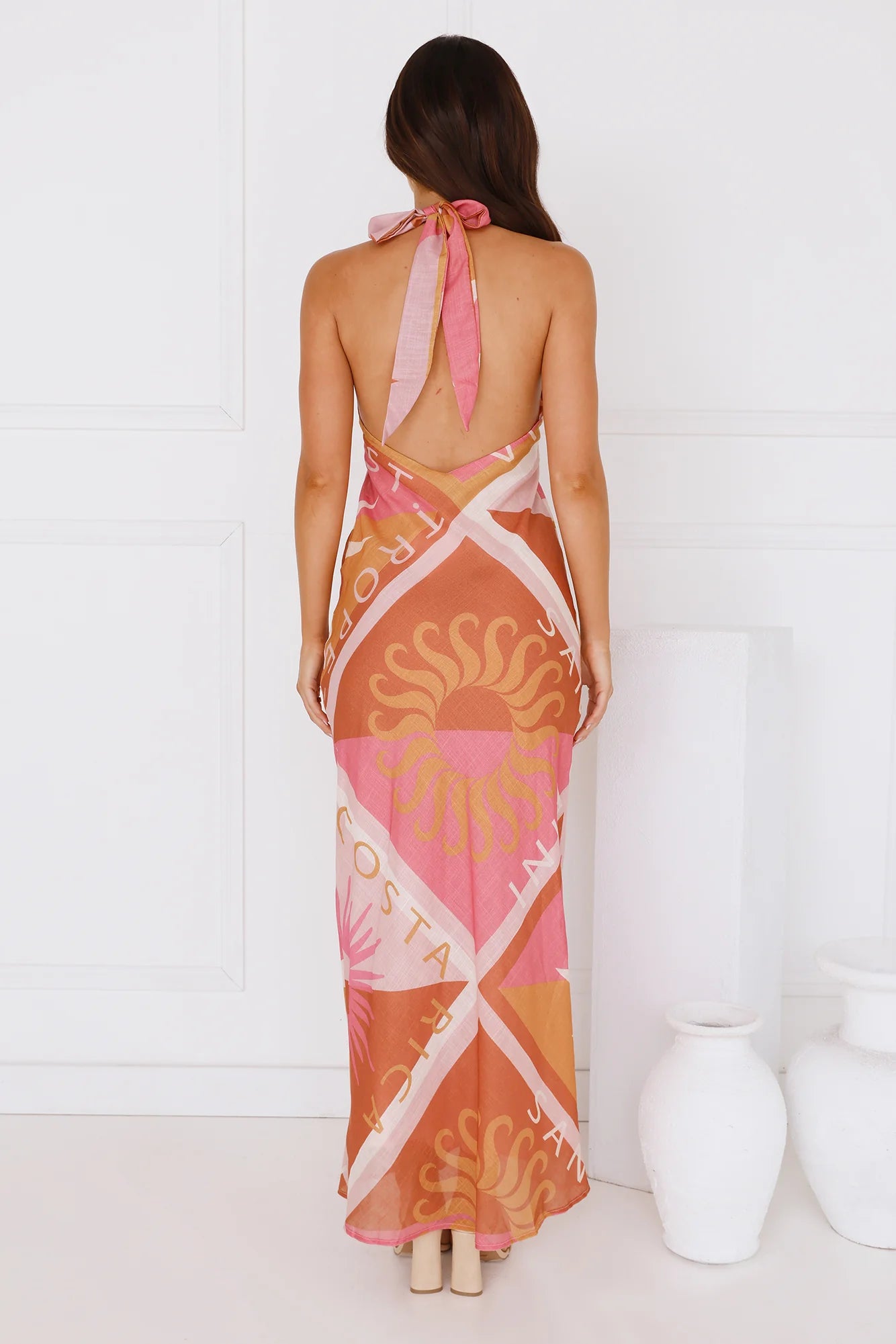 Soak up the sunshine with the Vacation Vista Halter Maxi Dress. Featuring a halter tie, a straight, flowy silhouette and a V-neck. Style with slides for a 'fit we're in love with.
