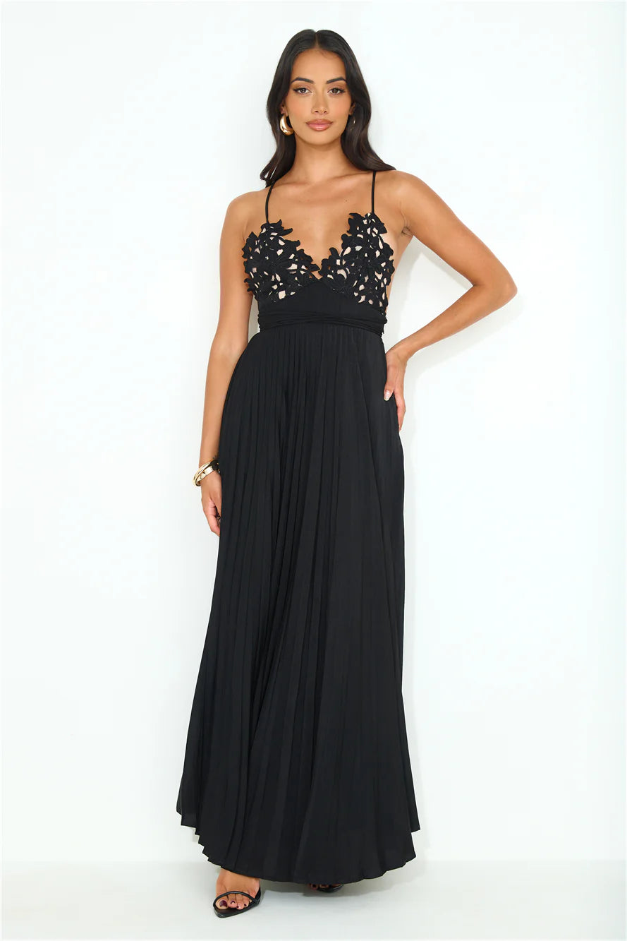 Lovely, this is your newest must-have! The Want And Need Maxi Dress features a gorgeous lace top with mesh lining and a pleated skirt. Style with sandals for a luxe 'fit.