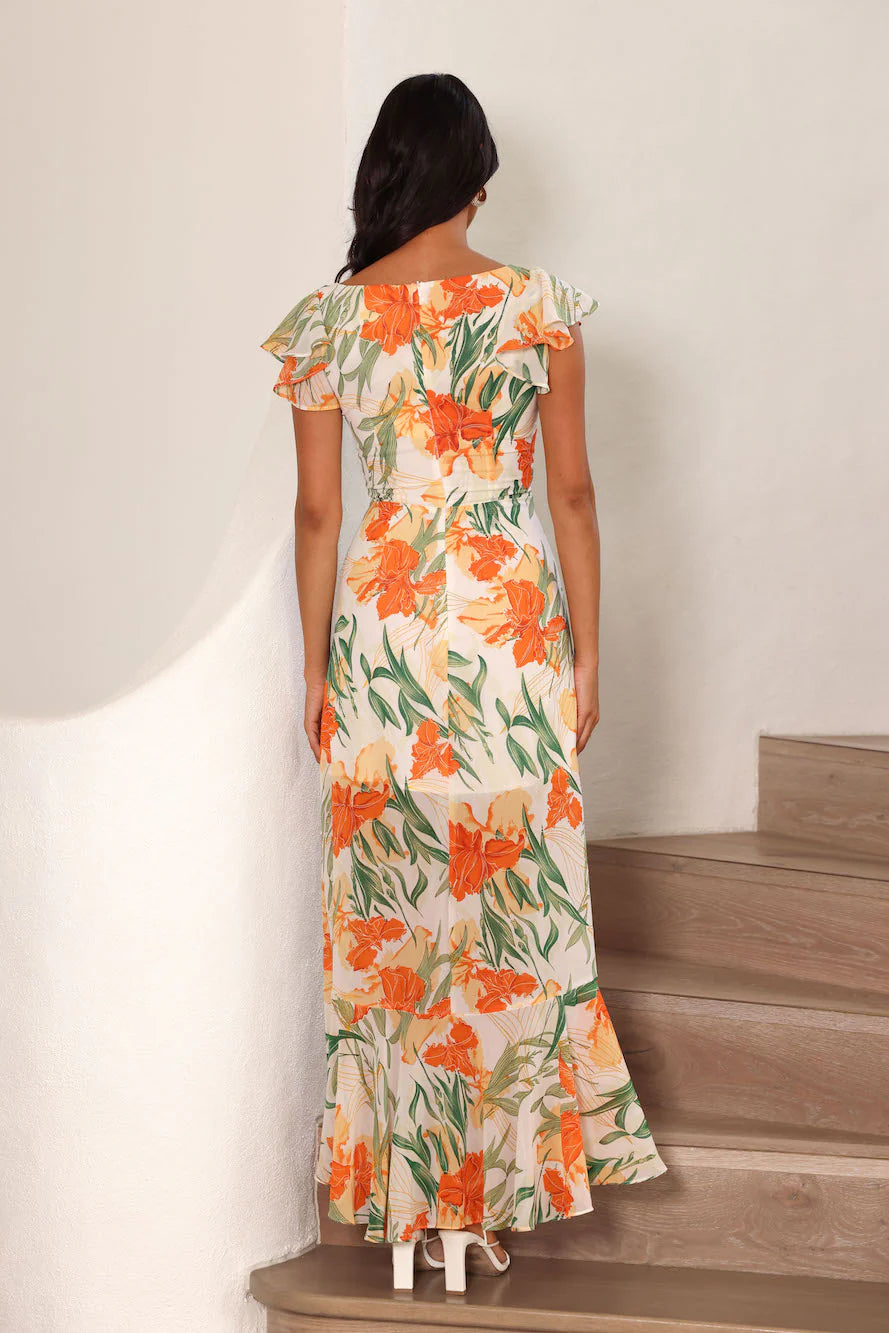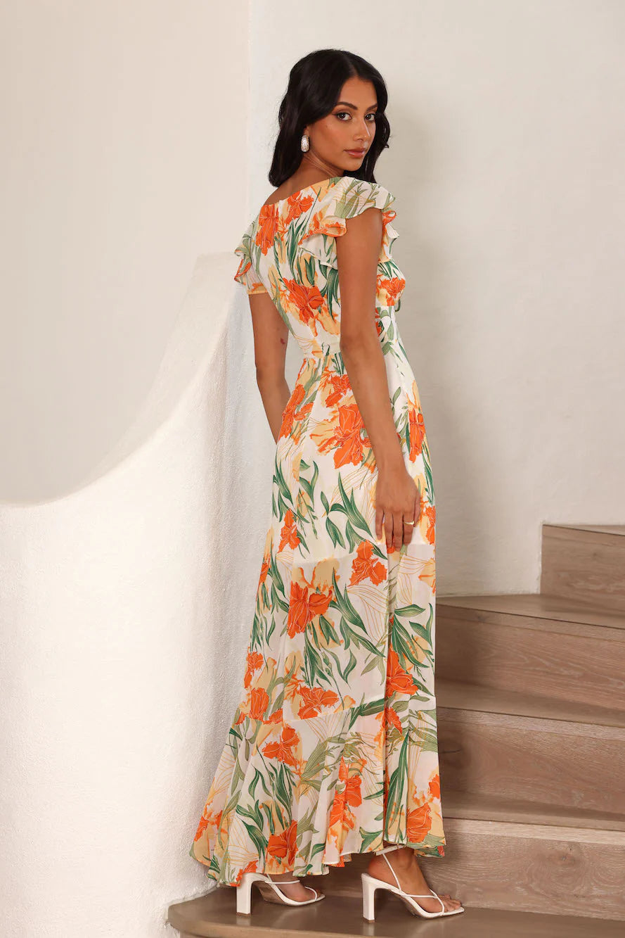 Refresh your vacay wardrobe with the Warmth Of The Tropics Maxi Dress! Featuring frill sleeves and a flowy skirt. Pair it with your favourite strappy sandals for a dreamy 'fit.