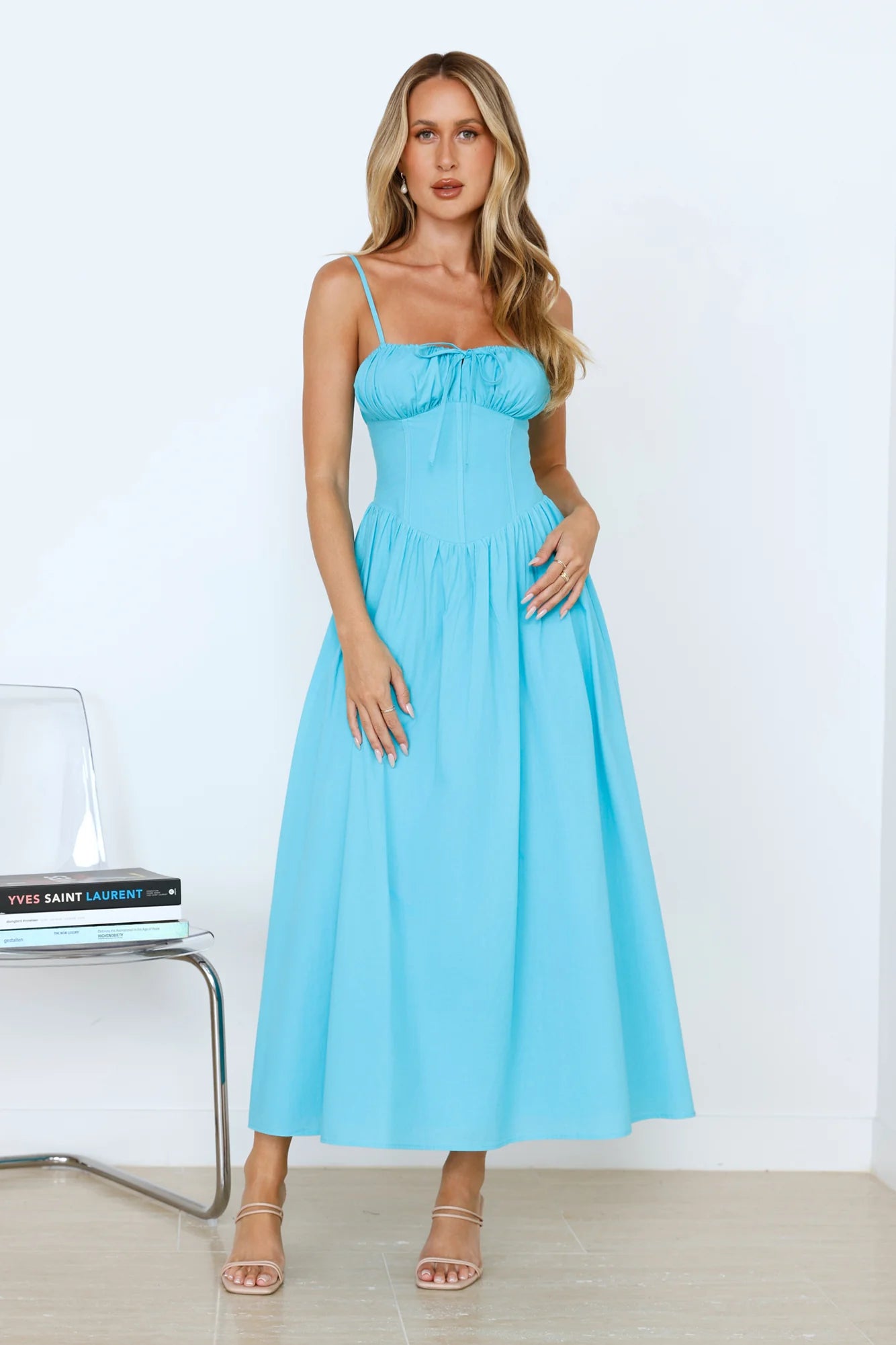 A gorgeous silhouette you need to be seen in. The Whimsical Woods Maxi Dress features a flowy skirt, a tie to the neckline and a boning look to the bodice. Style with heels and curls.