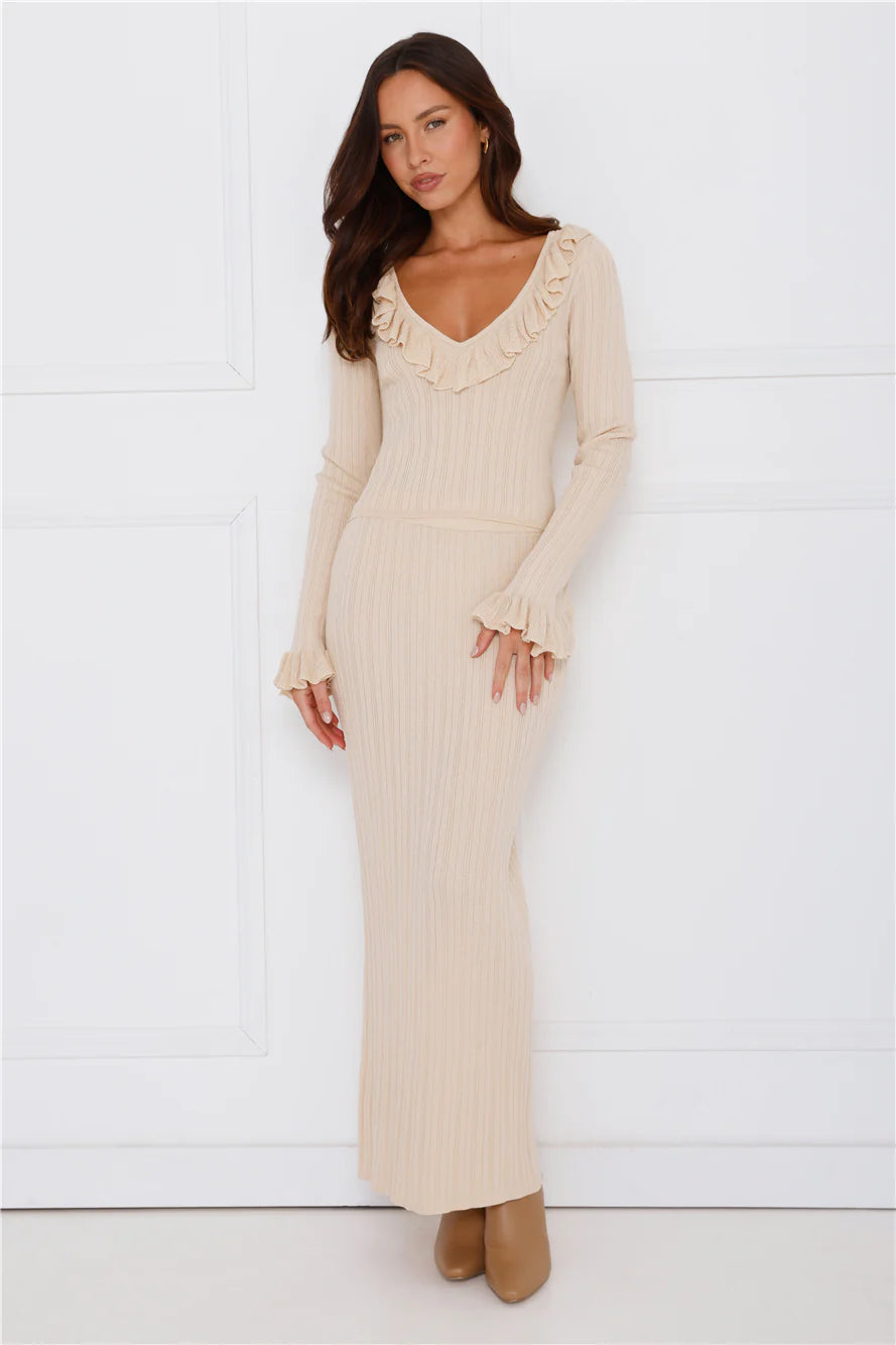 Embrace your cosy style with the Winter Stars Knit Maxi Skirt. This ribbed knit skirt features a bodycon fit and is high waisted, perfect for your winter wardrobe. Style with the matching for a fashionable look!