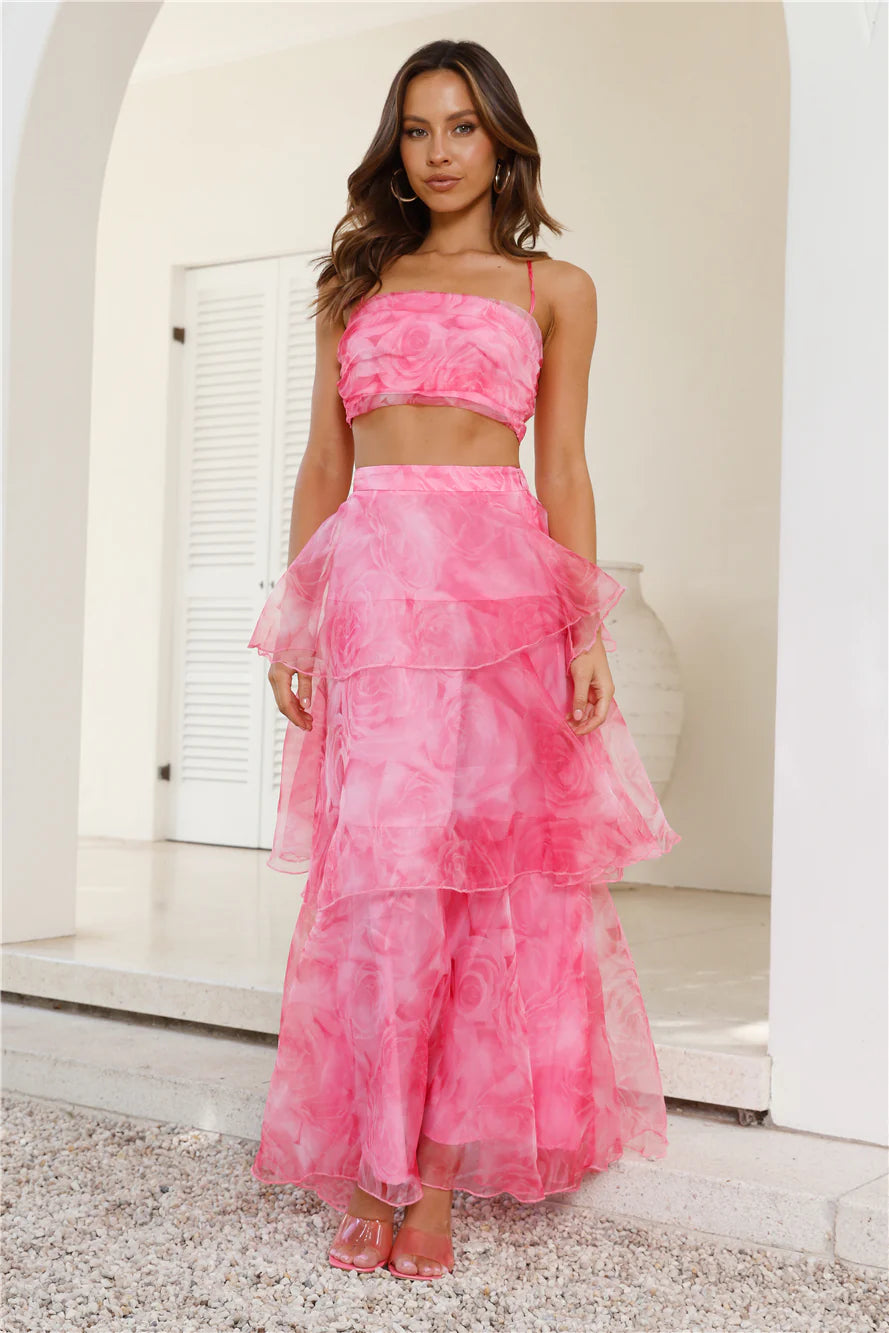 Showstopping 'fit - yes, please! The Worthy Of Roses Frill Crop Top features crisscross straps with a gorgeous open back and tie. Style with the matching for a look you won't want to take off.