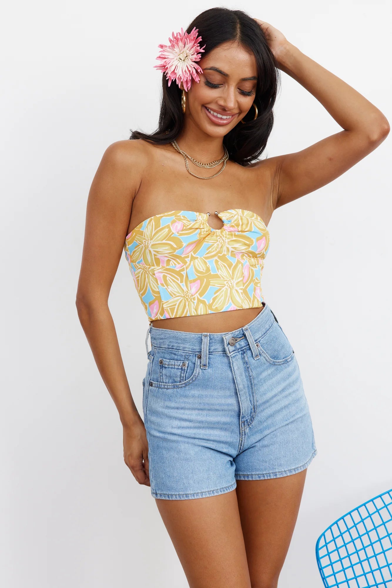 Play life like you're always on your dream Yacht Trip. This crop is one for the pinterest boards as it features a strapless design with a rinng detail and a low back. Style yours with a mini skirt and platforms.